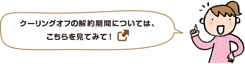 ことわり方は? ●ムシする 知らない人に付いて行ってはいけません。ムシしましょう。 ●はっきり断わる 断わりにくい雰囲気をつくってきますが、「いらない」とはっきり伝えましょう。 ●クーリングオフをする 万が一契約してしまっても、解約かいやく=クーリングオフができる場合があります。信頼できる大人の人に相談してみましょう。